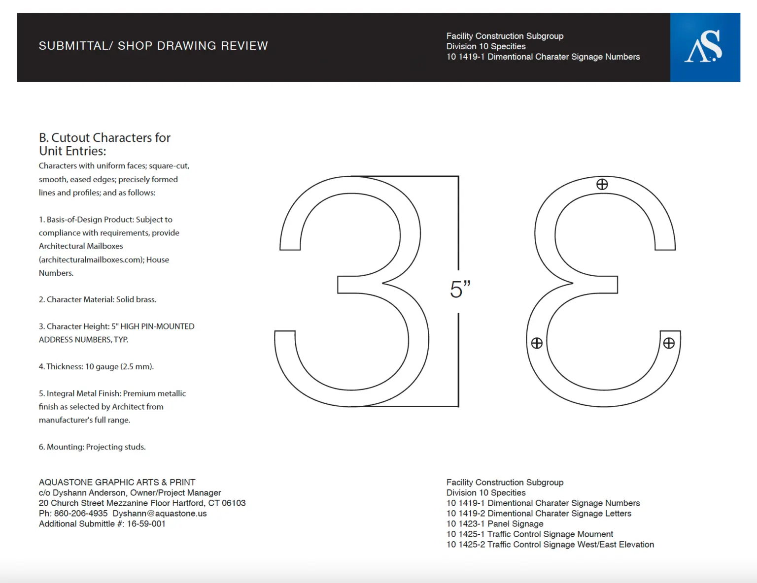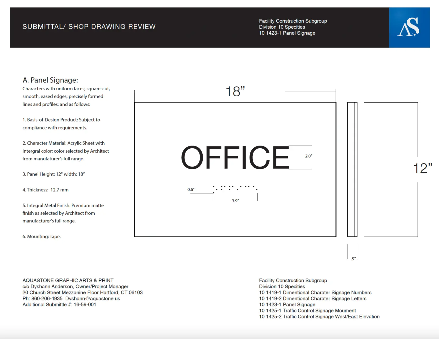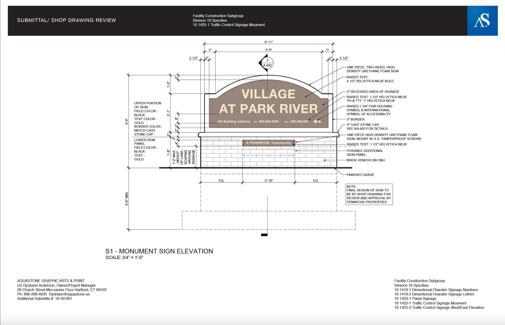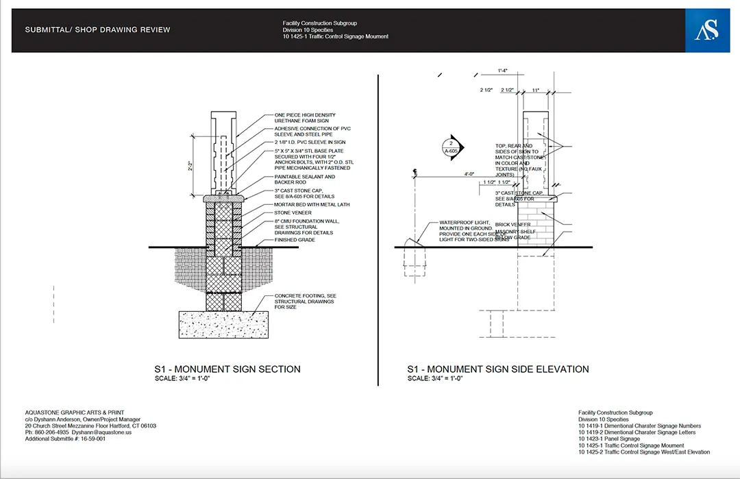 Aquastone offers pre-manufacturing and manufacturing installation for signage. Blueprints reading and understanding the scope of work is the first step to processing an order. All projects are completed systematically according to the scope of work with shop drawings. Samples must be approved before manufacturing or purchasing supplies. After production, we quality check with approved proofs provided.